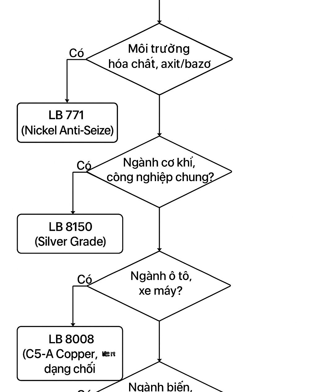 Dưới đây là sơ đồ dạng cây (decision tree) giúp bạn lựa chọn mỡ bôi trơn Loctite 77164, 76764, C5-A, 51606 thông dụng theo ứng dụng: